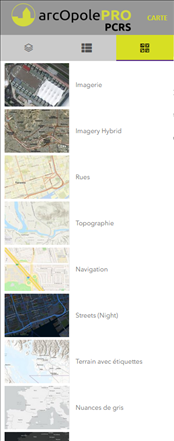 PCRS présents dans la carte et les fonds de carte disponibles (fonds de plan