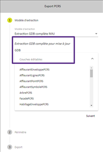 partie 1 « Modèle d’extraction » de la fenêtre d’Export PCRS :