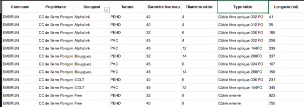 - Rapports de location fourreaux : Mise à disposition de rapports permettant de sortir des quantitatifs afin d’aider à la génération de facture aux occupants de l’infrastructure en ma possession.