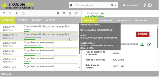 - Possibilités de sélection graphique dans la carte pour filtrer les demandes géographiquement