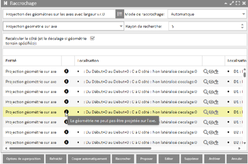 - Fonctions complémentaires pour l’import de données par l’utilisateur : gestion de la géométrie terrain, possibilité de lancer la gestion du raccrochage sur ces données importées.