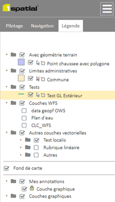 Ajout d’un nouveau mode d'affichage de la légende. Possibilité d’associer la légende dans la partie gauche de l’interface sous forme d’un onglet au même niveau que « navigation « et « Pilotage » :