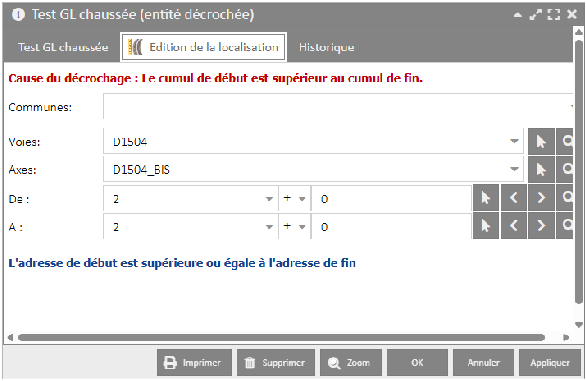 - Vue tableau et fiche : mise en évidence des entités décrochées et cause du décrochage